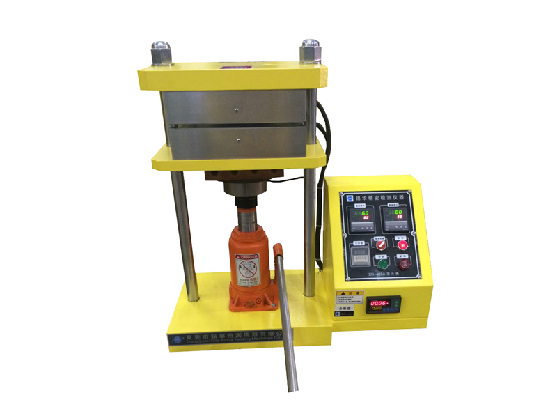 將原料放于鑄模內,置于本機兩電熱板間,依據(jù)原料性質設置一定壓力及溫度,使原料成型試片以供試驗,做為生產配料之依據(jù)。