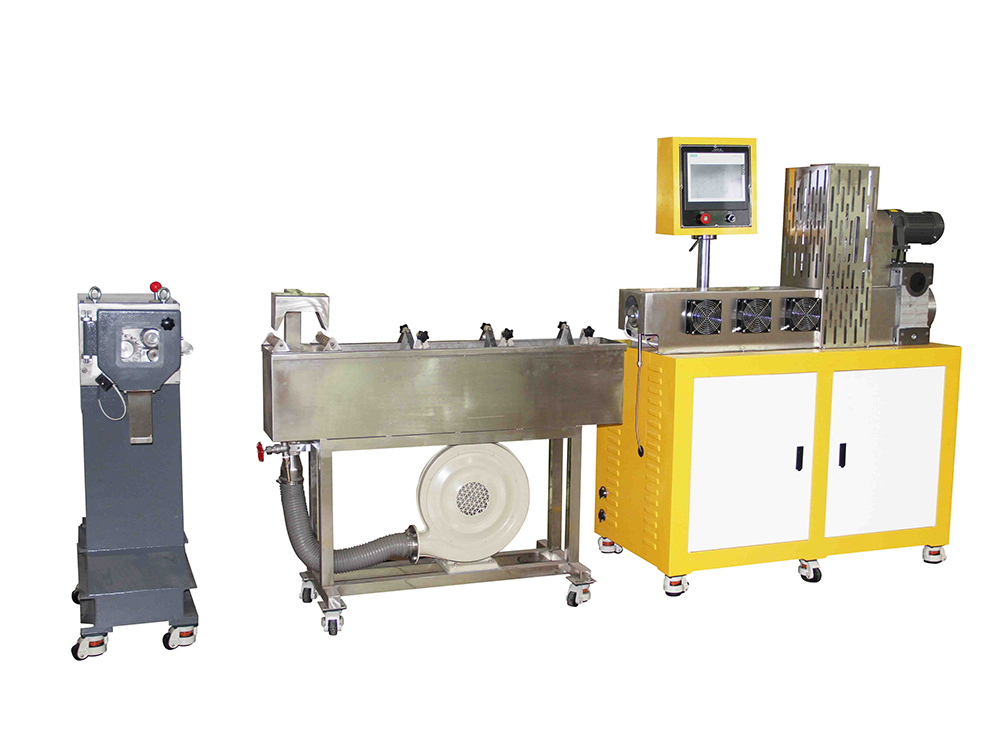 本機主要由主驅(qū)動電機、傳動裝置、擠出裝置、加料斗、電控系統(tǒng)、模頭等組成.